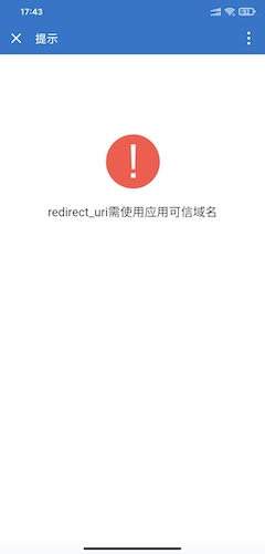 修改了 UAT 环境应用(未在企业微信提交上线)的可信域名之后,遇到了该提示,因为是测试环境,直接将测试安装的企业删除后重新测试安装,就正常了。